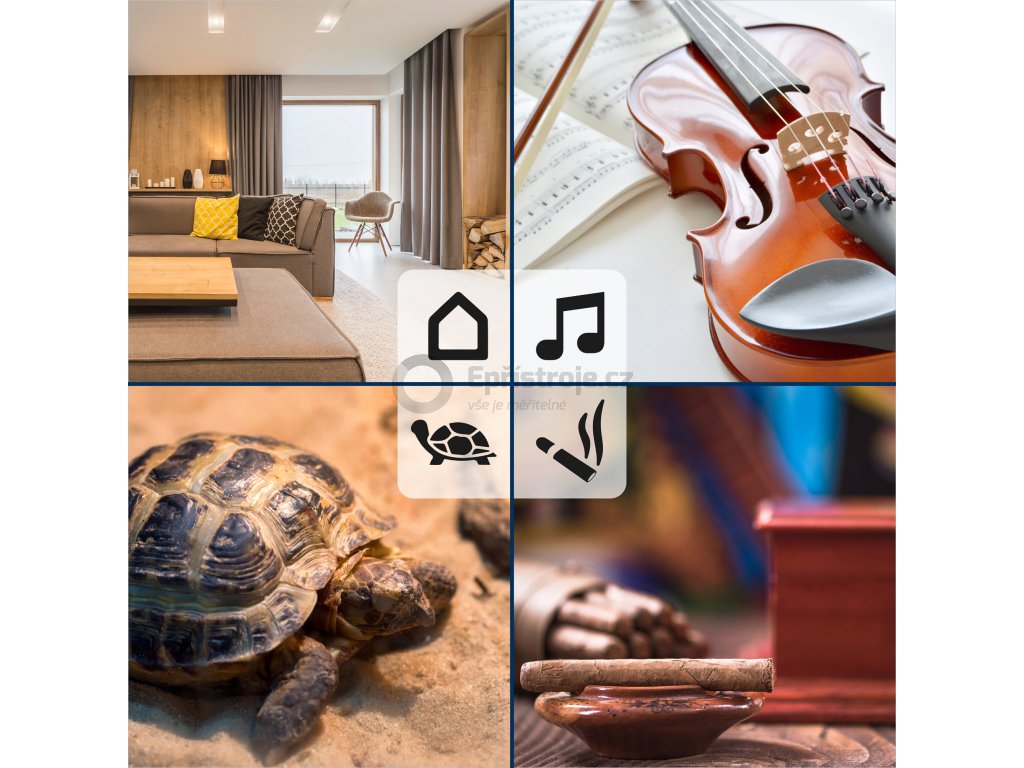 - Ukazatel úrovně komfortu pro 4 oblasti (klima místnosti, hudební nástroje, želva a humidor)
