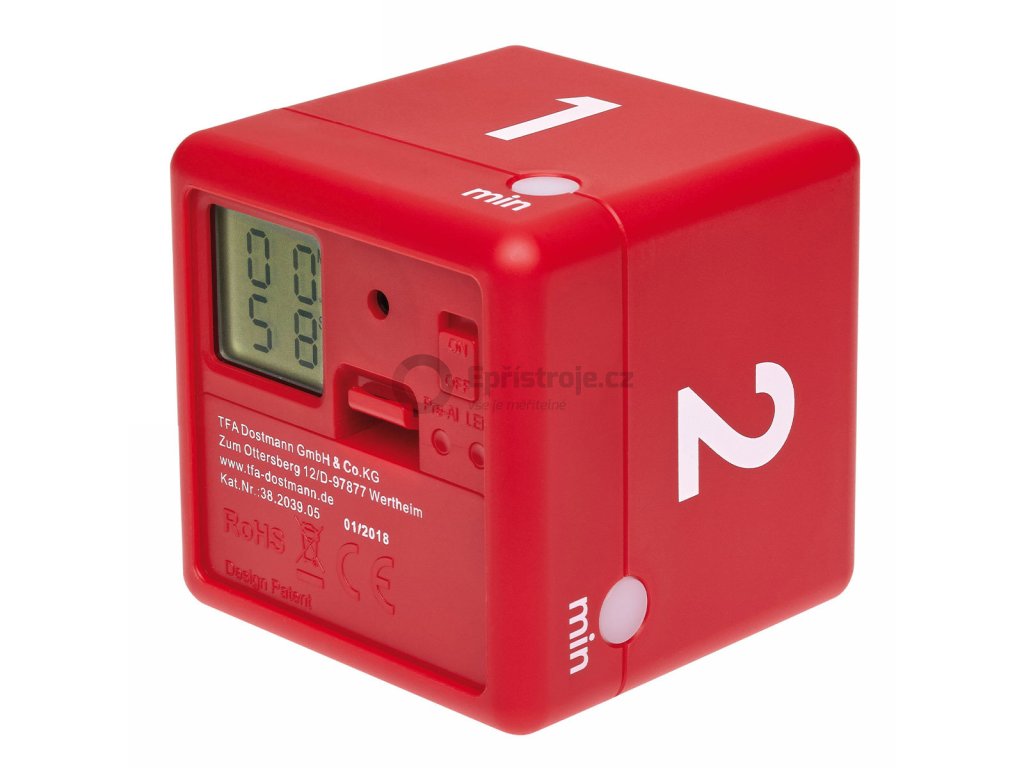 TFA 38.2039.05 | CUBE TIMER - časovač ve tvaru kostky (1 - 2 - 3 - 5 minut) - ČERVENÁ