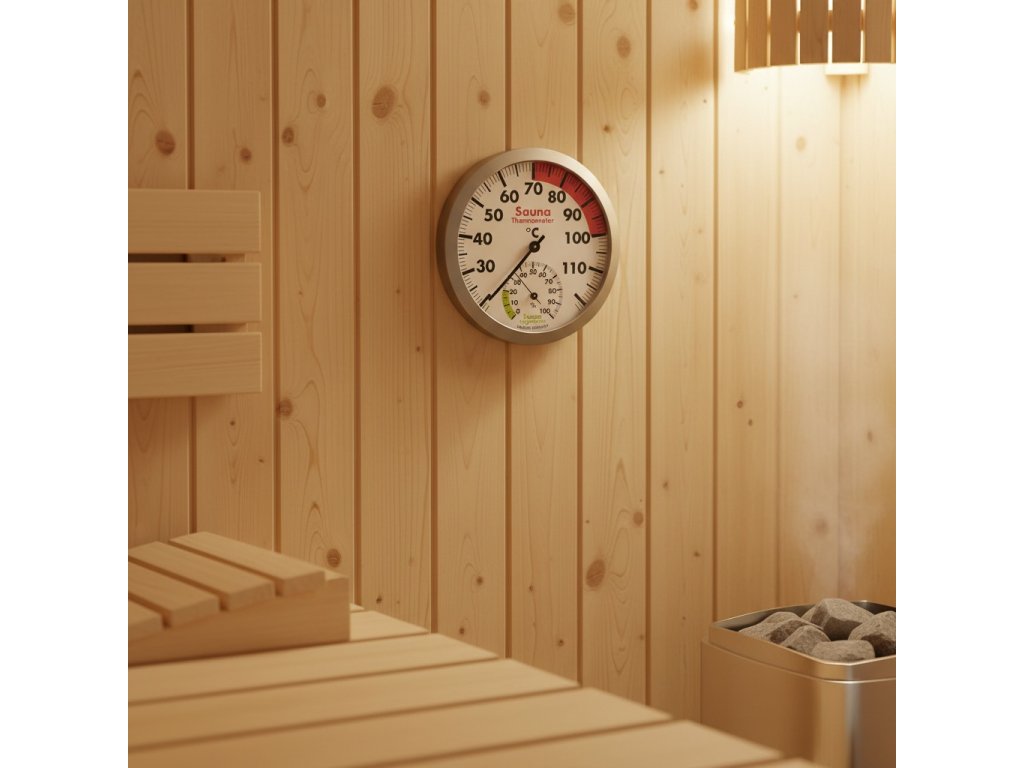 S tímto saunovým teplo-vlhkoměrem můžete sledovat teplotu a vlhkost ve vaší sauně a zajistit si tak nejvyšší možný komfort. Velká stupnice je velmi dobře čitelná, optimální rozsah je vyznačen barevně. To vám umožní rychle zjistit, zda je v sauně udržována správná teplota/vlhkost.