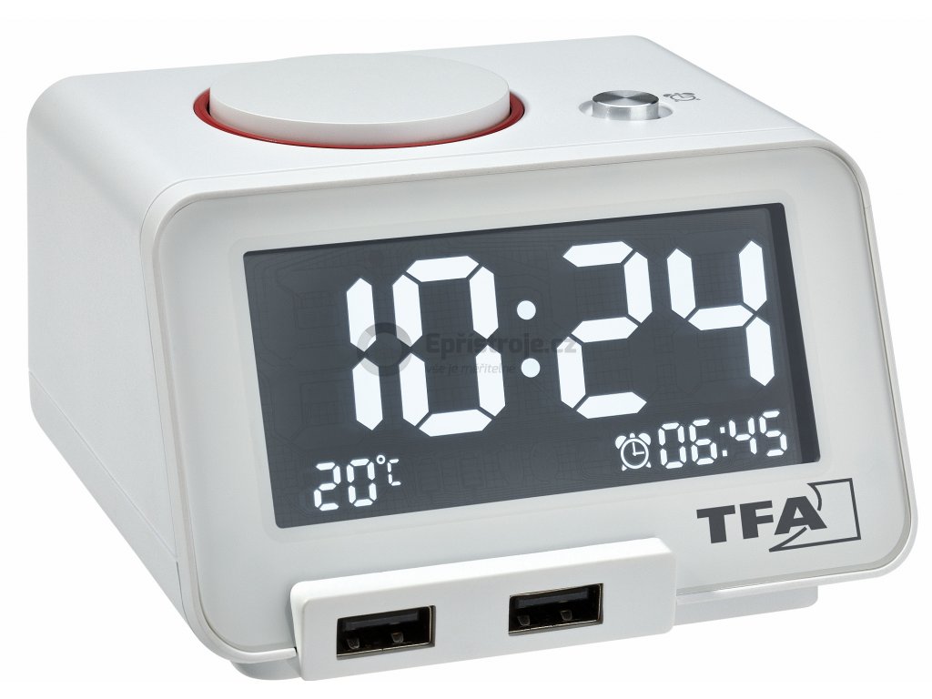 TFA 60.2017.02 | Digitální budík TFA HOMTIME s možností USB nabíjení - bílý