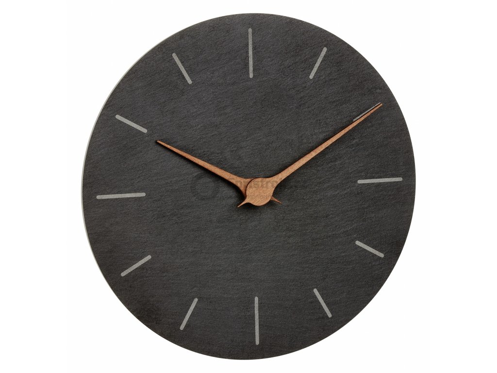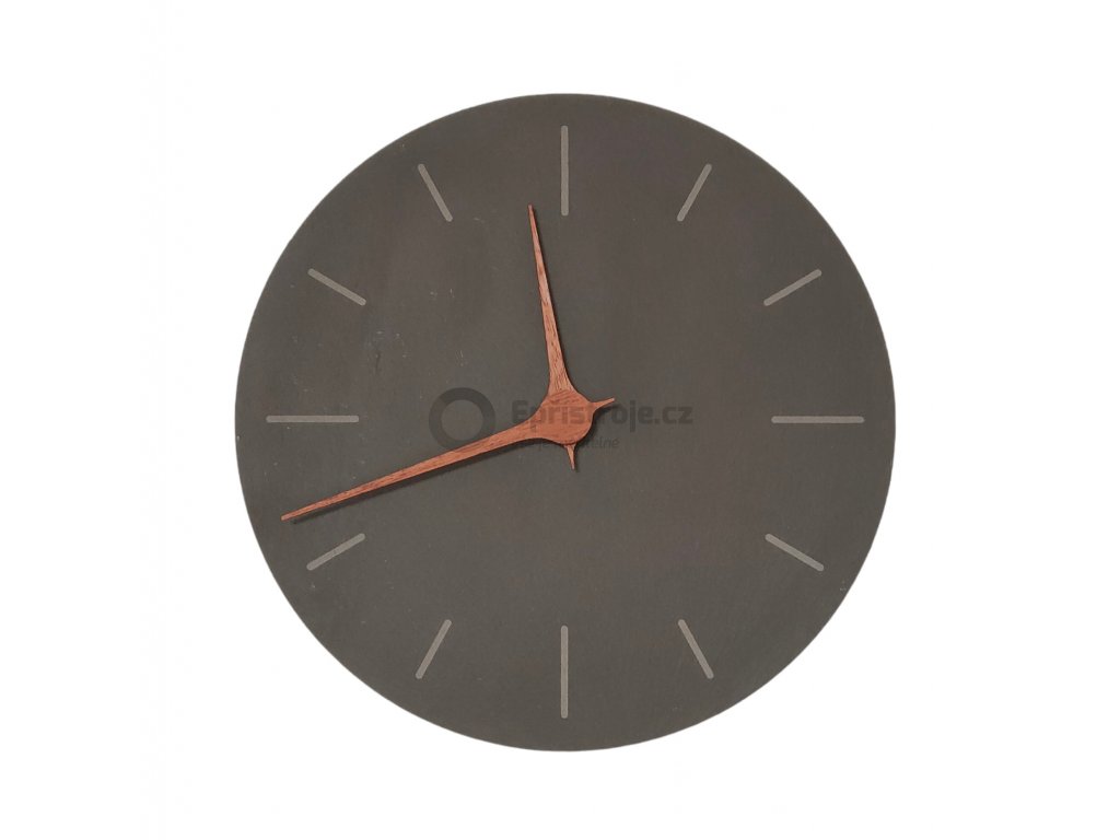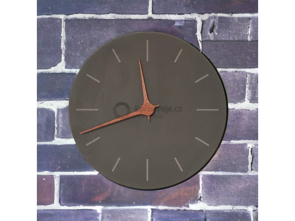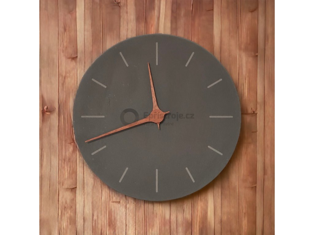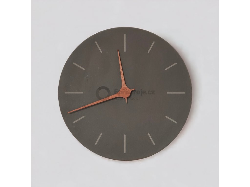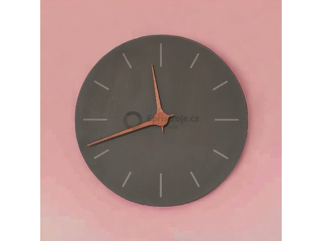 - Ciferník vyrobený z břidlice s gravírováním hodinových značek