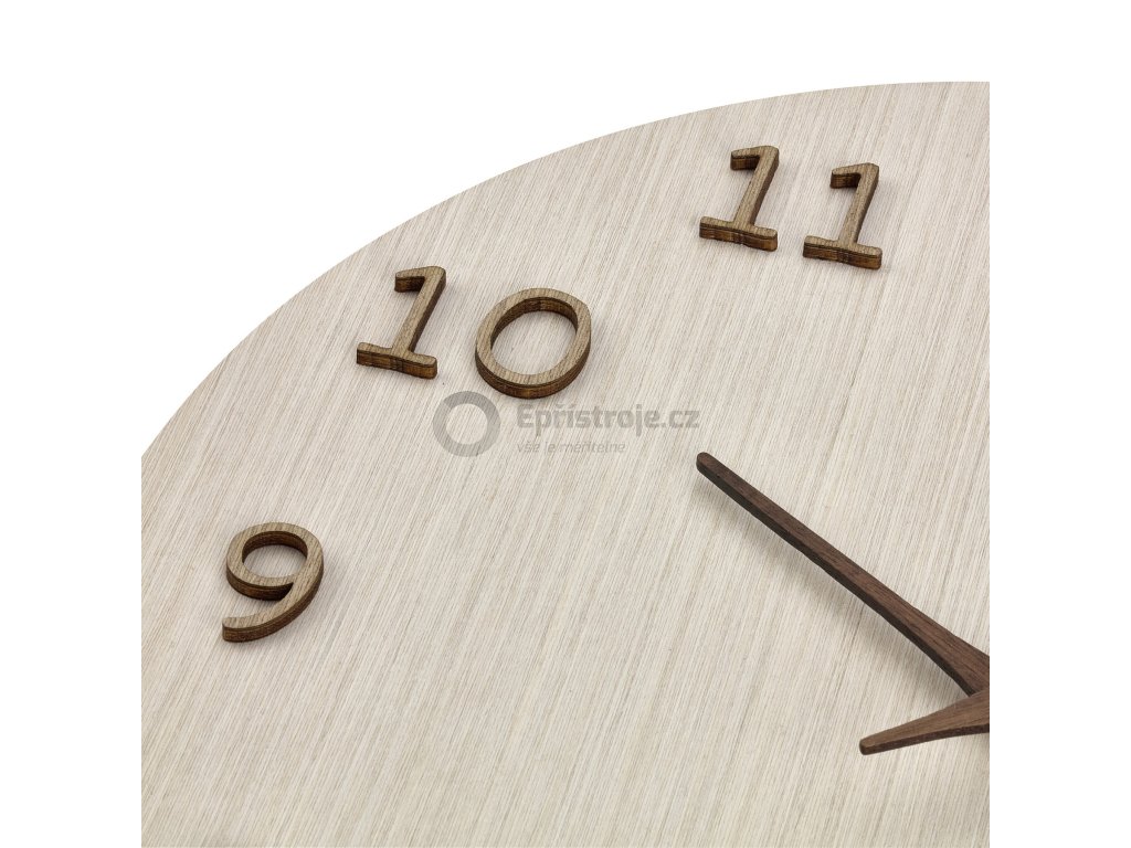 - Ciferník vyrobený z dřevěných vláken (MDF)