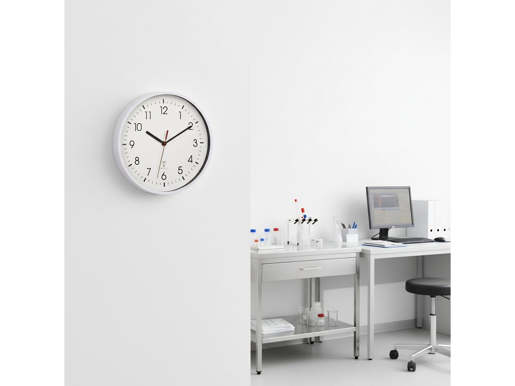 Elegantní a perfektně přehledné nástěnné QUARTZ hodiny s měření teploty a relativní vlhkosti v místnosti. Jednoduchý čistý design a díky tomu skvělá čitelnost ciferníku.