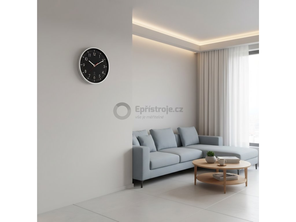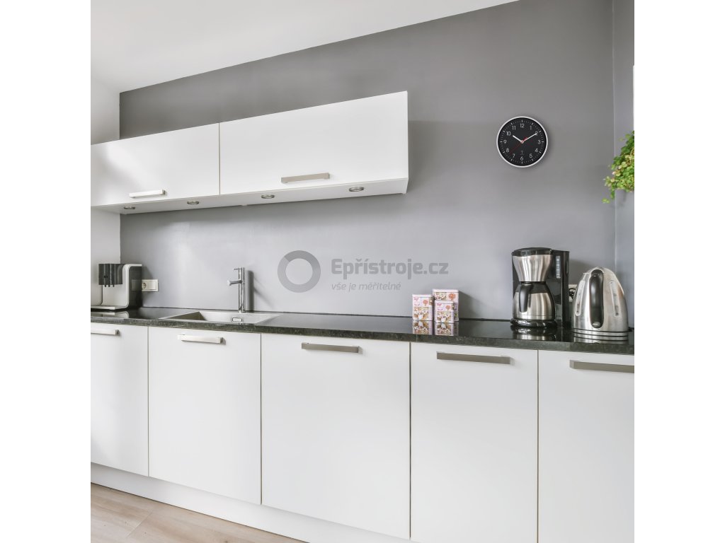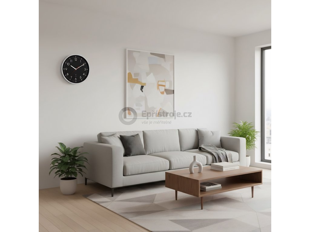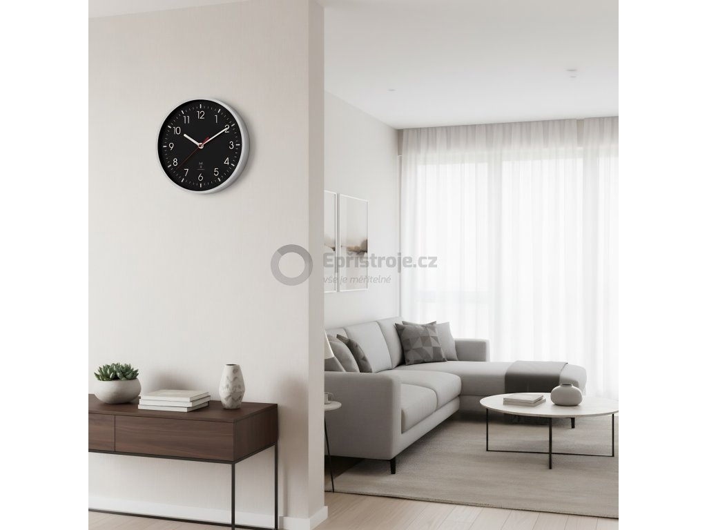 Elegantní a perfektně přehledné nástěnné QUARTZ hodiny s měření teploty a relativní vlhkosti v místnosti. Jednoduchý čistý design a díky tomu skvělá čitelnost ciferníku.