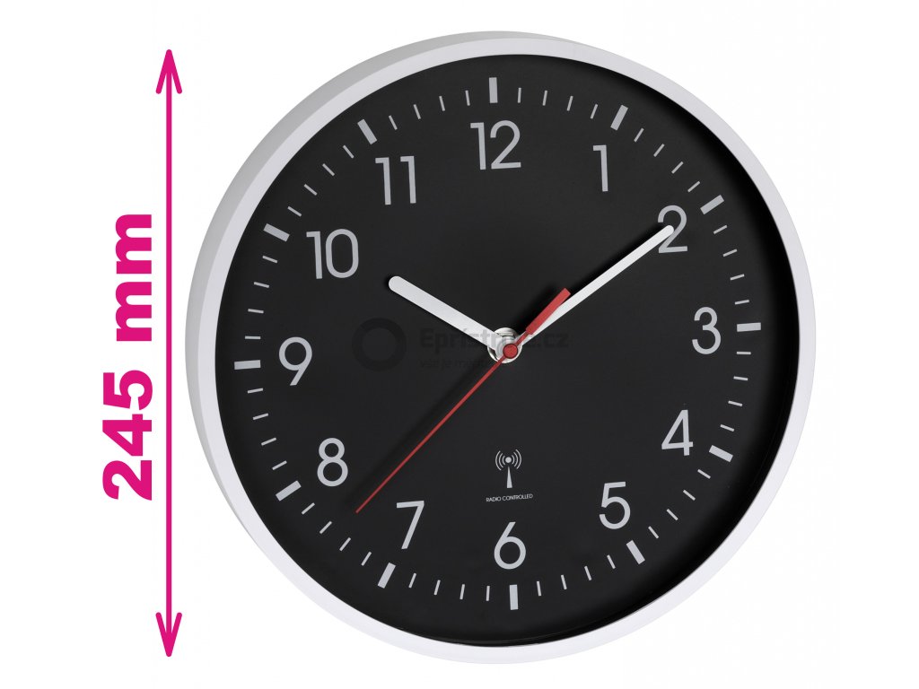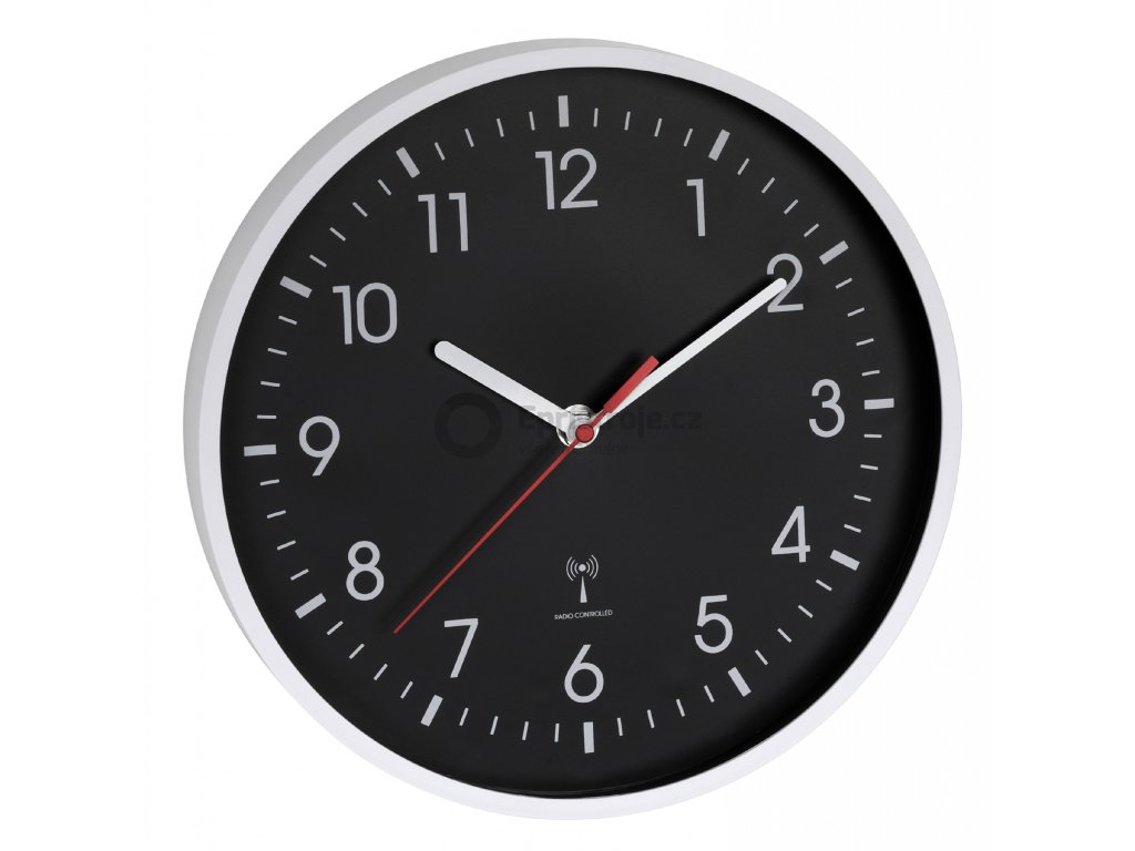 TFA 60.3550.20 | Analogové nástěnné hodiny řízené radiovým signálem DCF-77 | 245 mm | BÍLÁ-ČERNÁ