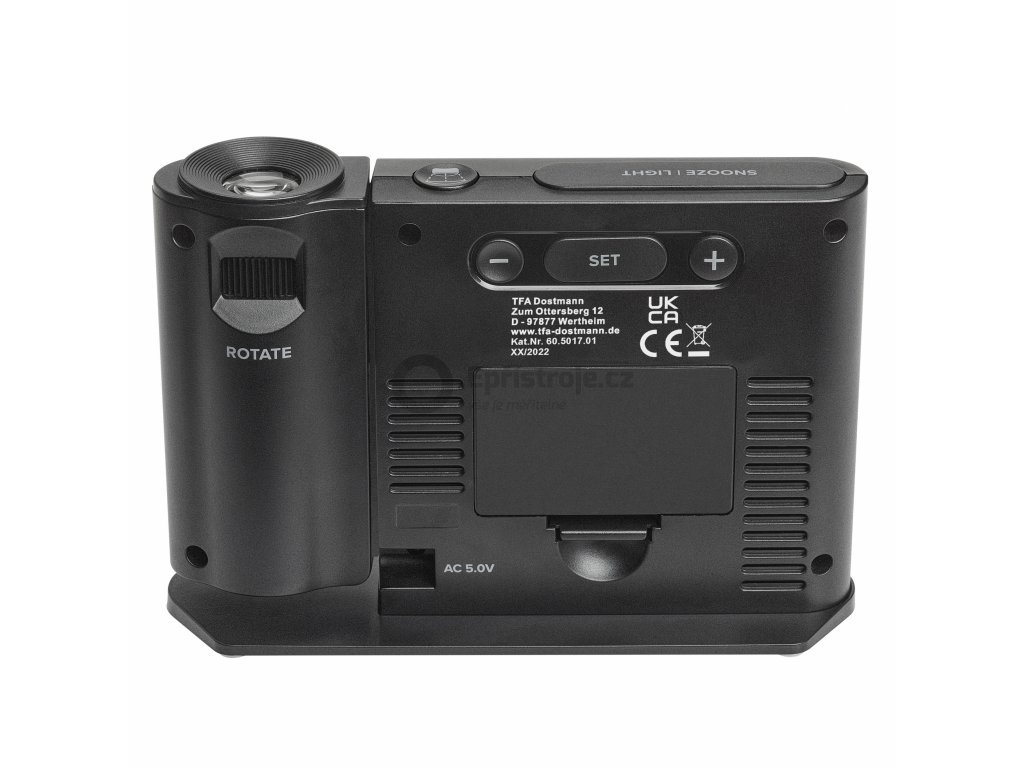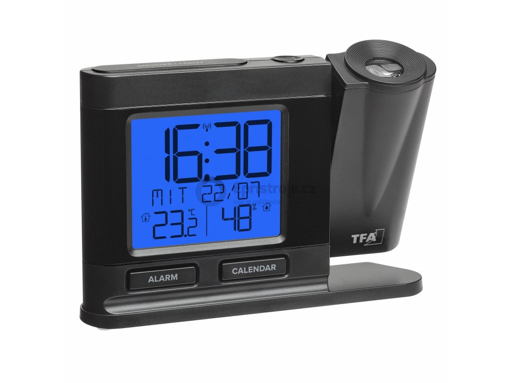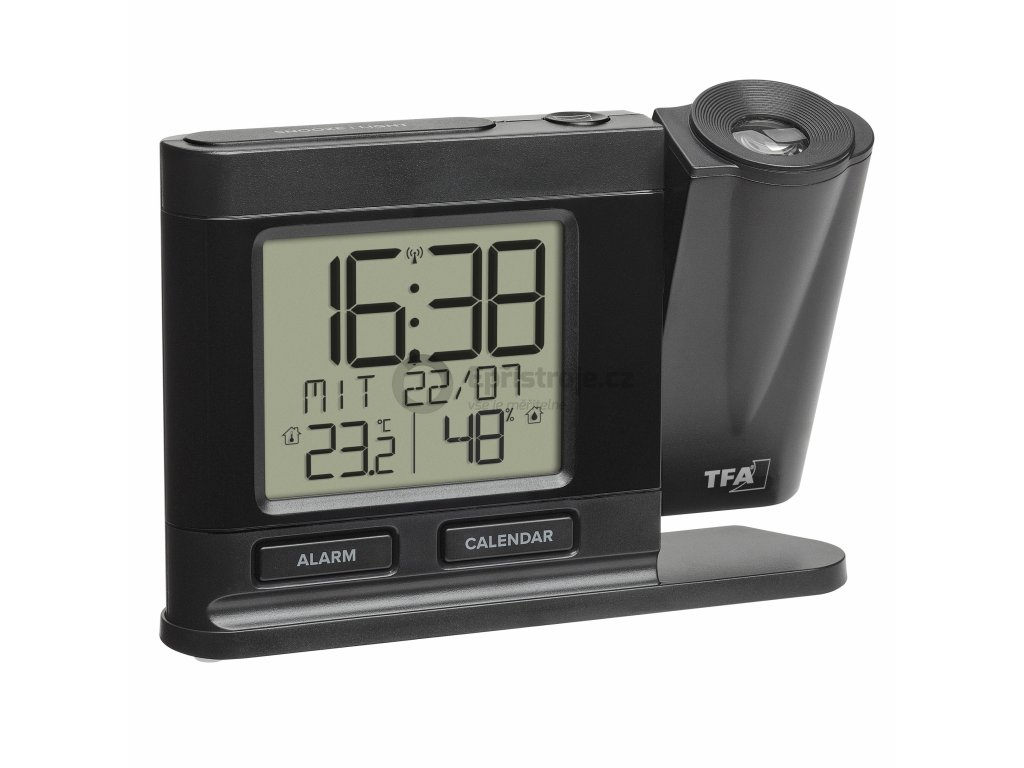 TFA 60.5017.01 | Rádiem řízený projekční budík s měřením vnitřní teploty a vlhkosti | černá