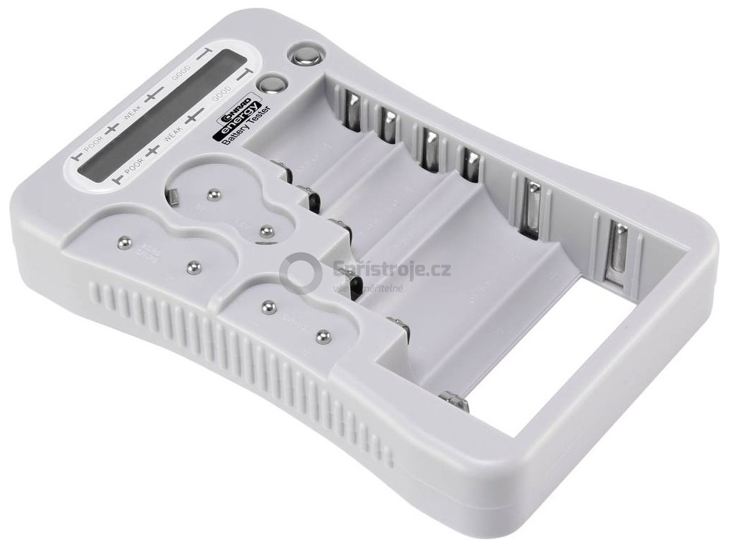 - Testovány mohou být tyto články: AAA, AA, C, D, 9 V článek, CR123A, CR2, CR-V3, 2CR5, CR-P2 a 1,5 V / 3 V knoflíkové baterie