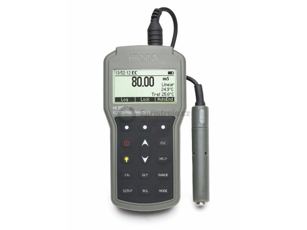 - Sondy: platinová 4-elektrodová EC/TDS sonda HI763133 s vestavěným teplotním senzorem a DNC konektorem, 1,5 m kabel (v ceně přístroje)