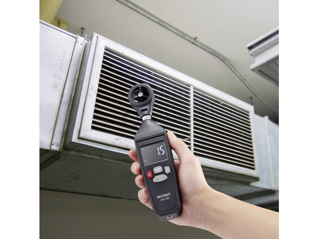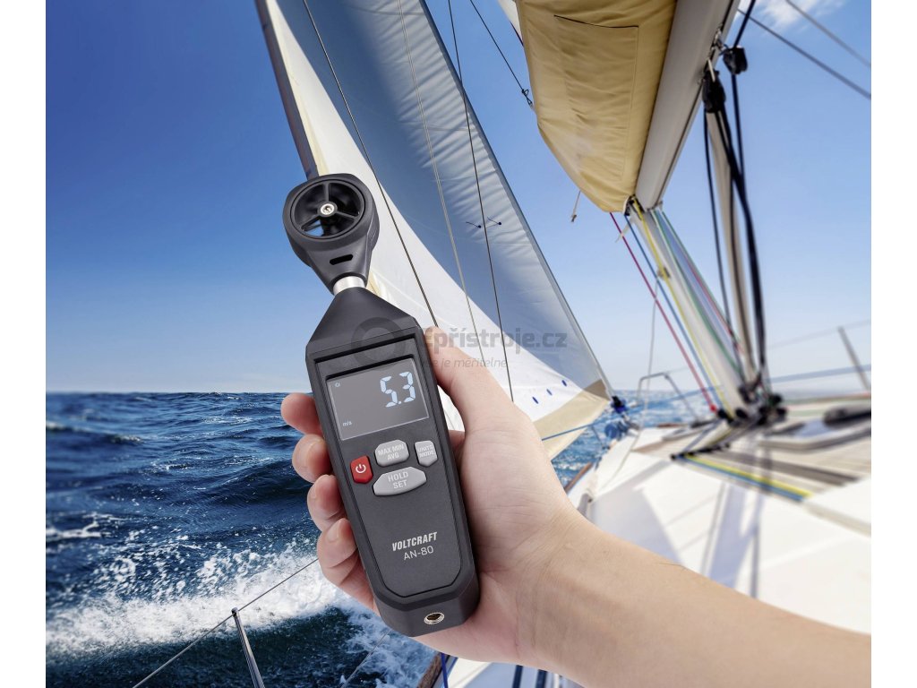 Voltcraft AN-80 | ISO kalibrační list | Turbínkový anemometr + teploměr | 0,3 - 30 m/s | -10 - 50 °C