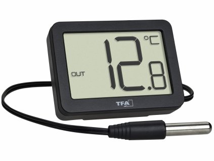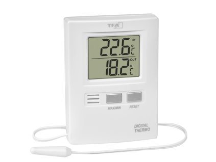 Měření teploty: -50..+70 °C, digitální MIN/MAX teploměr s externím teplotním čidlem na kabelu (TFA 30.1009). Teploměr je dodáván vč. kalibračního listu