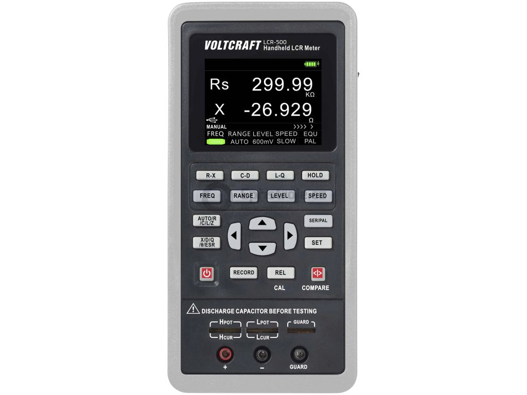 VOLTCRAFT LCR-500 změří hodnoty s přesností 0,25 % při měření odporu a 0,4 % při měření kapacity. 2,8" barevný LCD displej TFT zobrazuje výsledky měření s rozlišením 40.000 digitů. Pomocí USB rozhraní lze všechna měření, výsledky a analýzy zobrazit i na PC.