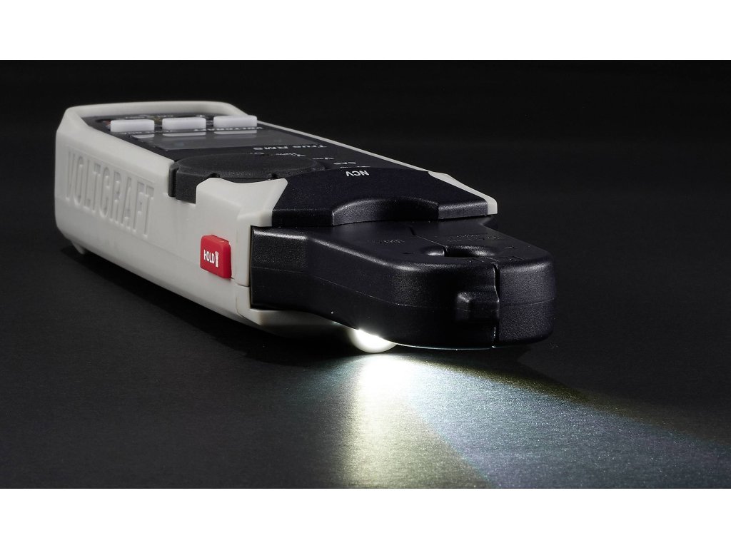 Tlačítko Hold slouží k ukládání hodnot, když je nelze odečíst z displeje během měření. Zde je toto tlačítko umístěno ergonomicky v pozici palce. Nemusí se hledat jako u jiných klešťových multimetrů.