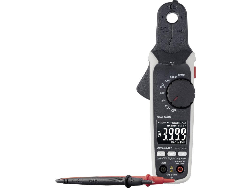 Voltcraft VC-513 | Klešťový ampérmetr do 80 A AC/DC s funkcí multimetru | TRUE RMS | proudové kleště