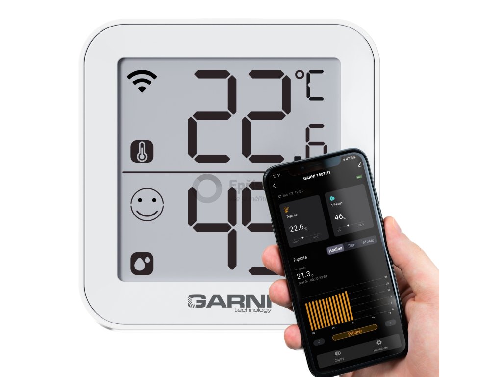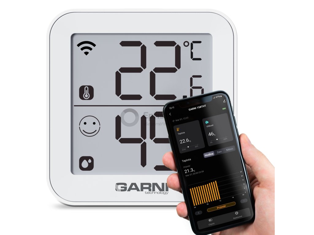 WiFi teploměr-vlhkoměr GARNI 158THT | -9,9 až +50 °C; 1 až 99 %RH | 3x baterie AA
