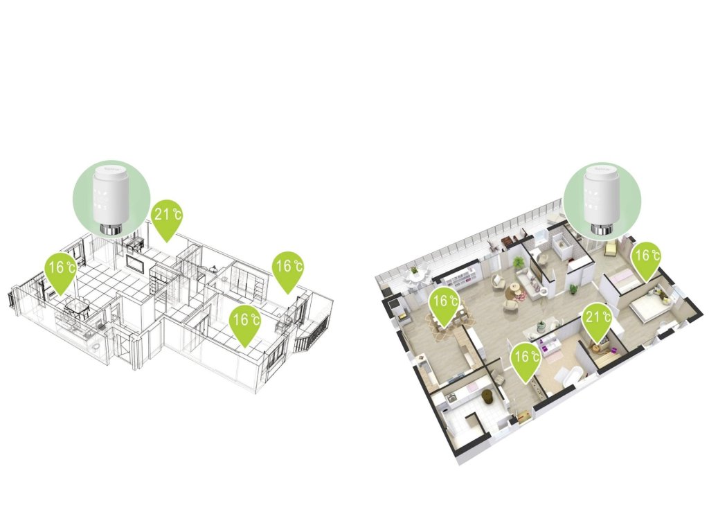 Digitální termostatická hlavice pro regulaci vytápěcího systému. Hlavice reguluje otopné těleso pomocí nastavených programů. Hlavice rozpozná otevřené okno a má dětskou pojistku.