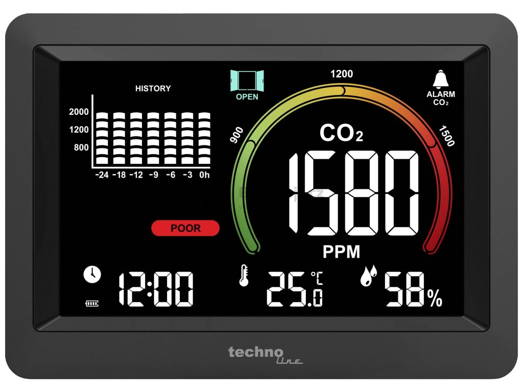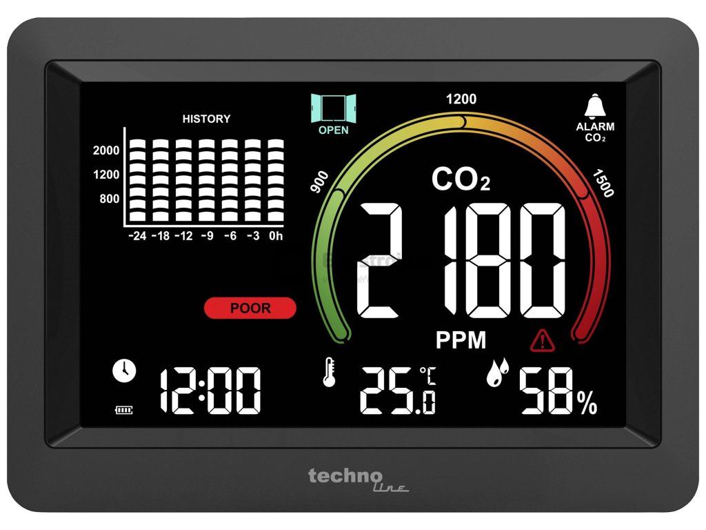 WL1028W | Měřič koncentrace CO2, měření teploty a vlhkosti | Techno Line | měření kvality vzduchu