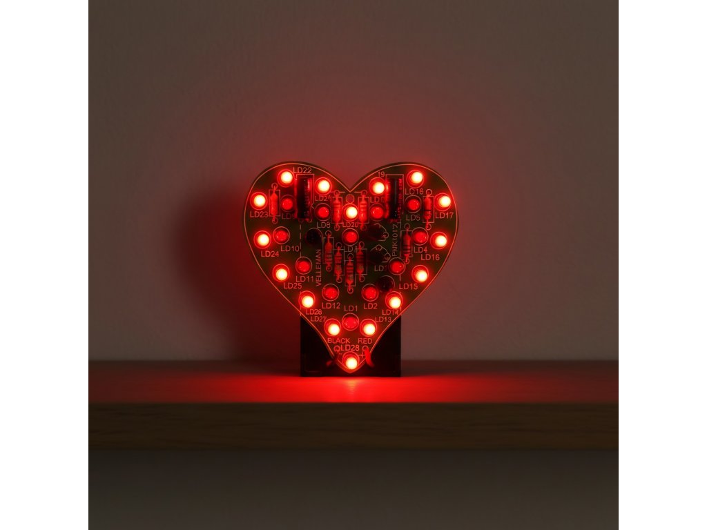 Stavebnice blikajícího "pulzujícího" SRDCE se vyznačuje minimem součástek a jednoduchou konstrukcí. Navíc díky jednostrannému plošnému spoji je stavebnice vhodná i pro úplné začátečníky elektroniky, kteří se s elektronikou teprve seznamují. Rychlost blikání dána použitými součástkami. Možnost napájení stavebnice z 9V baterie (není součástí balení) dělá celé zařízení plně mobilním a umožňuje jeho instalaci kdekoliv.
