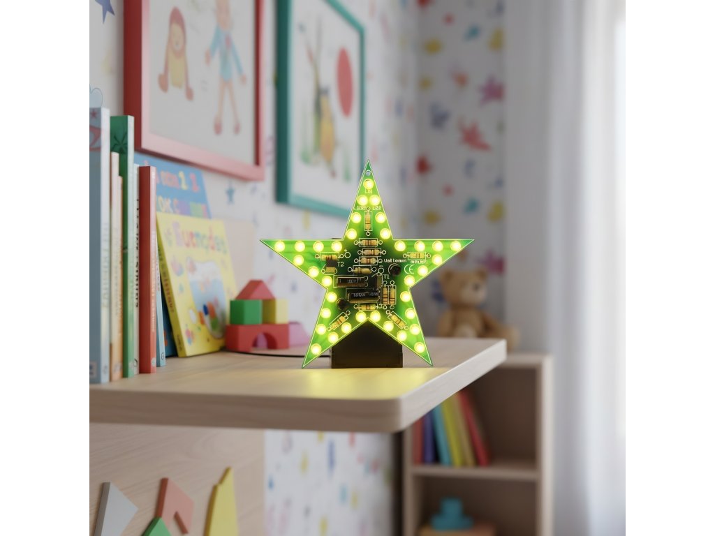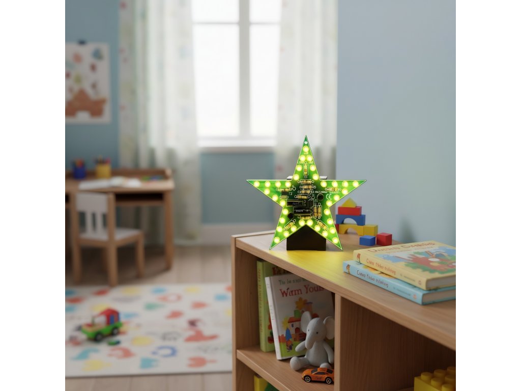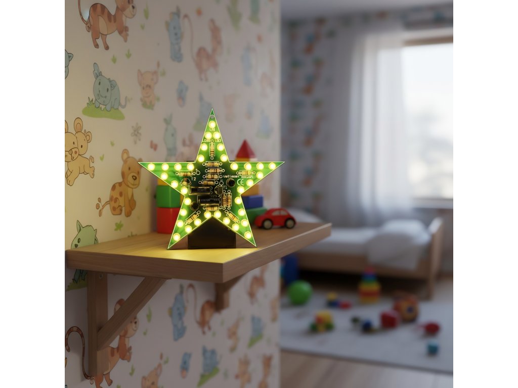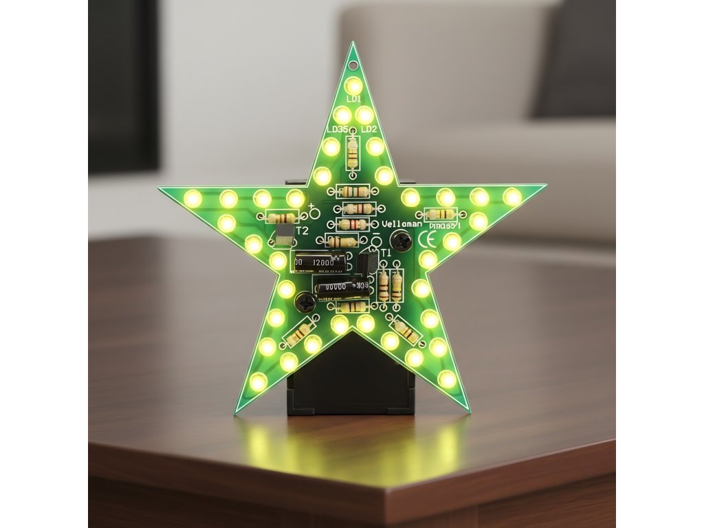 Stavebnice blikající nebo svítící hvězdy se vyznačuje minimem součástek a jednoduchou konstrukcí. Navíc díky jednostrannému plošnému spoji je stavebnice vhodná i pro úplné začátečníky elektroniky, kteří se s elektronikou teprve seznamují. Rychlost blikání dána použitými součástkami. Možnost napájení stavebnice z 9V baterie (není součástí balení) dělá celé zařízení plně mobilním a umožňuje jeho instalaci kdekoliv ať už LED hvězdu jen postavíte na poličku nebo stolek a nebo zavěsíte třeba do okna.